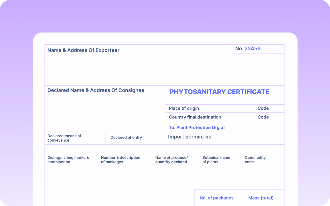 AI OCR to extract and automate data from phytosanitary certificates—no templates, high accuracy, and fast integration.