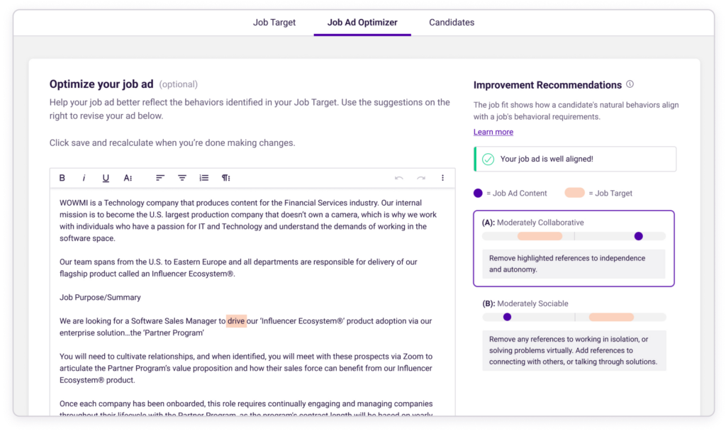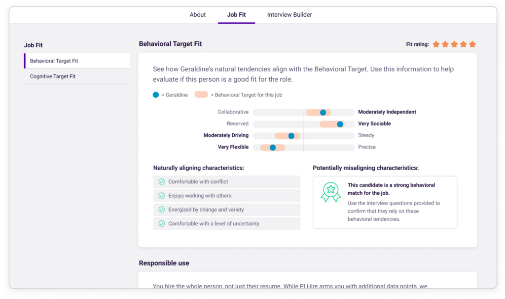 - Collaborative Job Targeting: Aligns hiring teams around essential behavioral traits for a role.