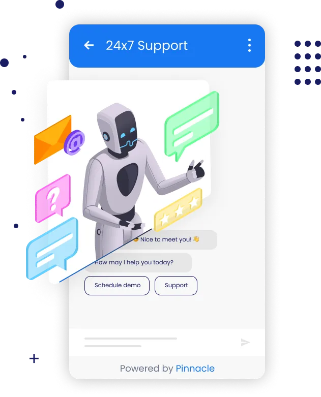 Pinnacle’s ChatBot platform "PinBot" empowers your organization to communicate in a very personal approach and automate customer interactions to resolve the customers’ problems in real-time. Our technologically advanced platform interprets consumer input or behaviour and generates feedback in the form of text messages, images, GIFs, audio, or videos. Save up to 35% of the service operation cost with our simple UX design.