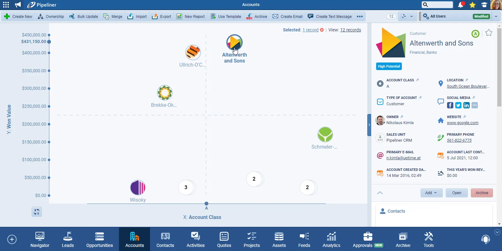 Pipeliner CRM is a visual, sales‑driven CRM platform designed to bring clarity, structure, and transparency to the entire revenue process. It centralizes leads, accounts, contacts, opportunities, and activities while emphasizing usability and adoption through intuitive visualizations. The system supports predictable sales execution, guided processes, improved forecasting, and stronger team alignment, making it suitable for organizations seeking efficiency, accountability, and consistent sales performance.