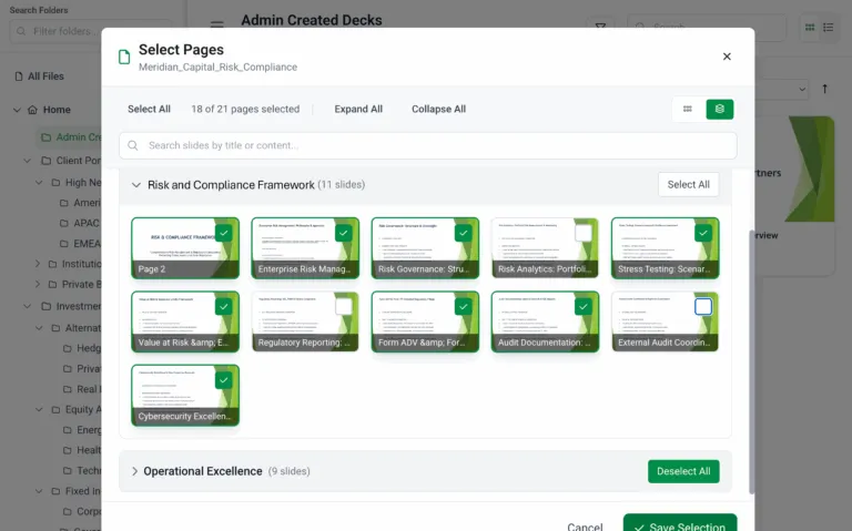- Content Personalization at Scale: Turns data and content into dynamic, live presentations for client engagements.