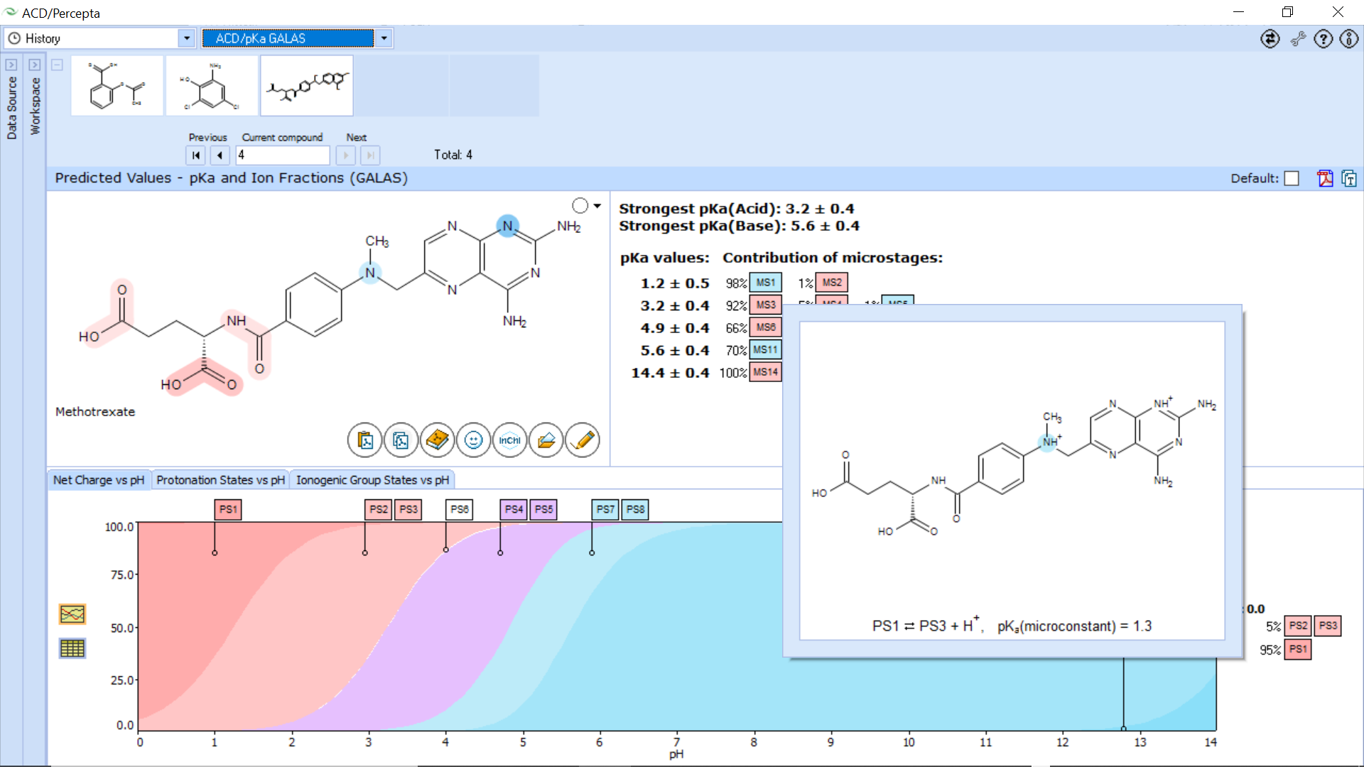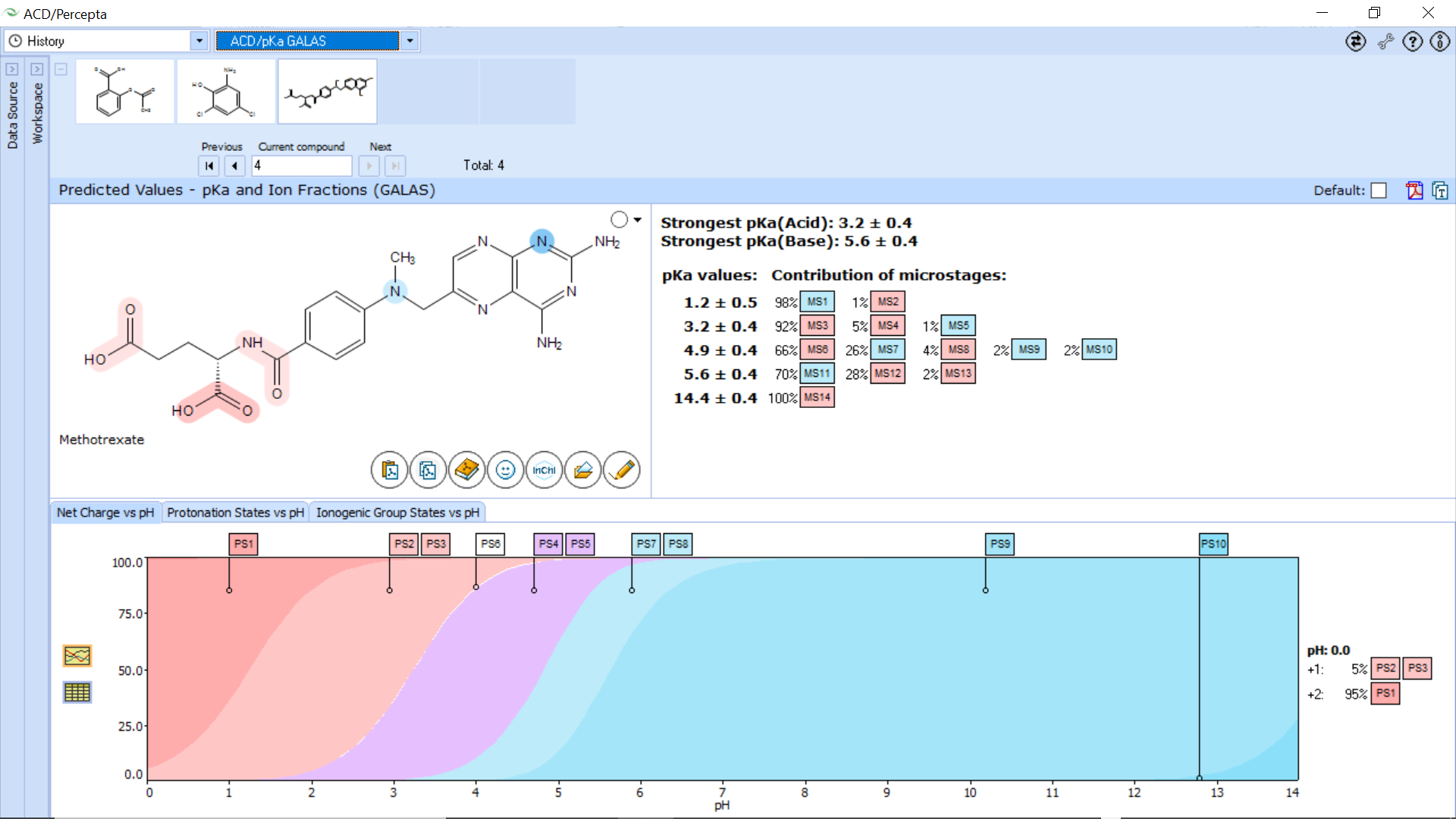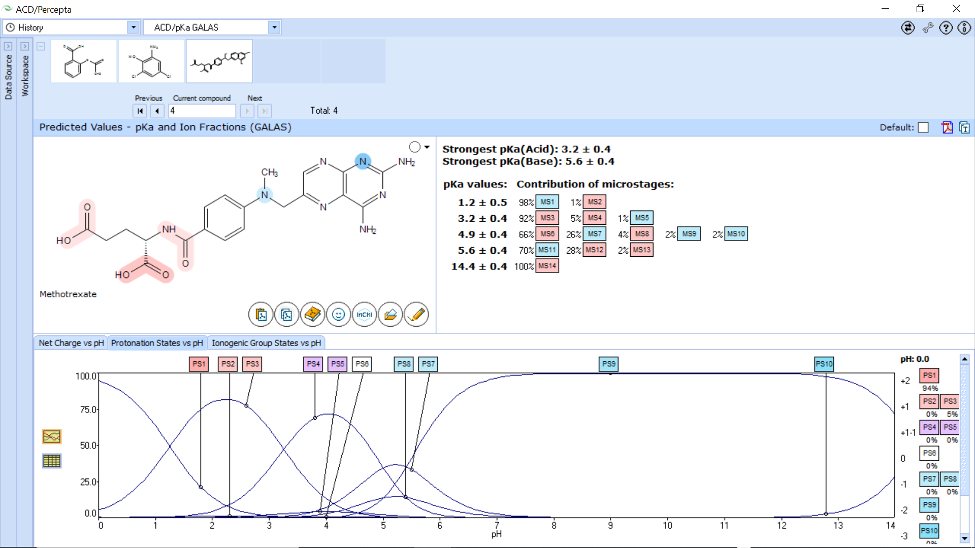 - Assess the distribution of ionized states and microspecies from a variety of plots. Understand the behavior of your molecule with automatically generated plots of pKa versus pH. Identify trends and prioritize compounds easily—create scatter plots, browse, filter, sort, and rank libraries.