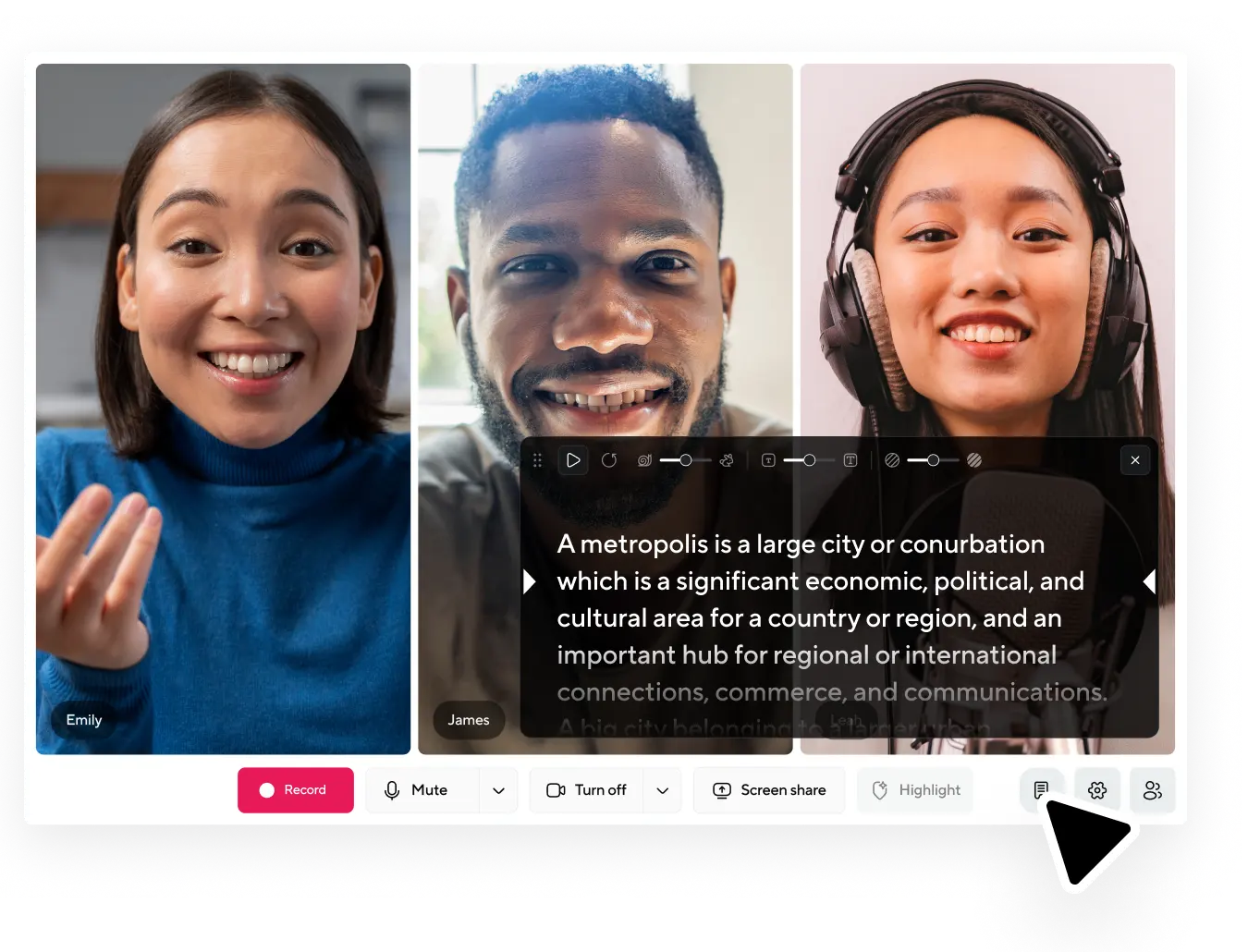 - Simple Activation: Access the teleprompter by clicking the scroll icon in the studio toolbar. A text box appears on the side where you can input your script.