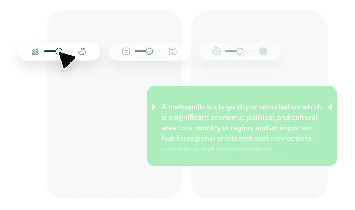 - Speed adjustment using a slider (e.g., snail to rabbit icons).