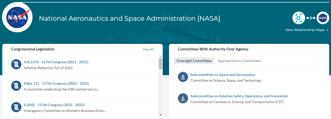 Congressional and Executive Branch Coverage Data across major federal institutions.