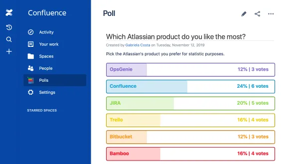 - Share your polls with other Confluence users and invite them to participate