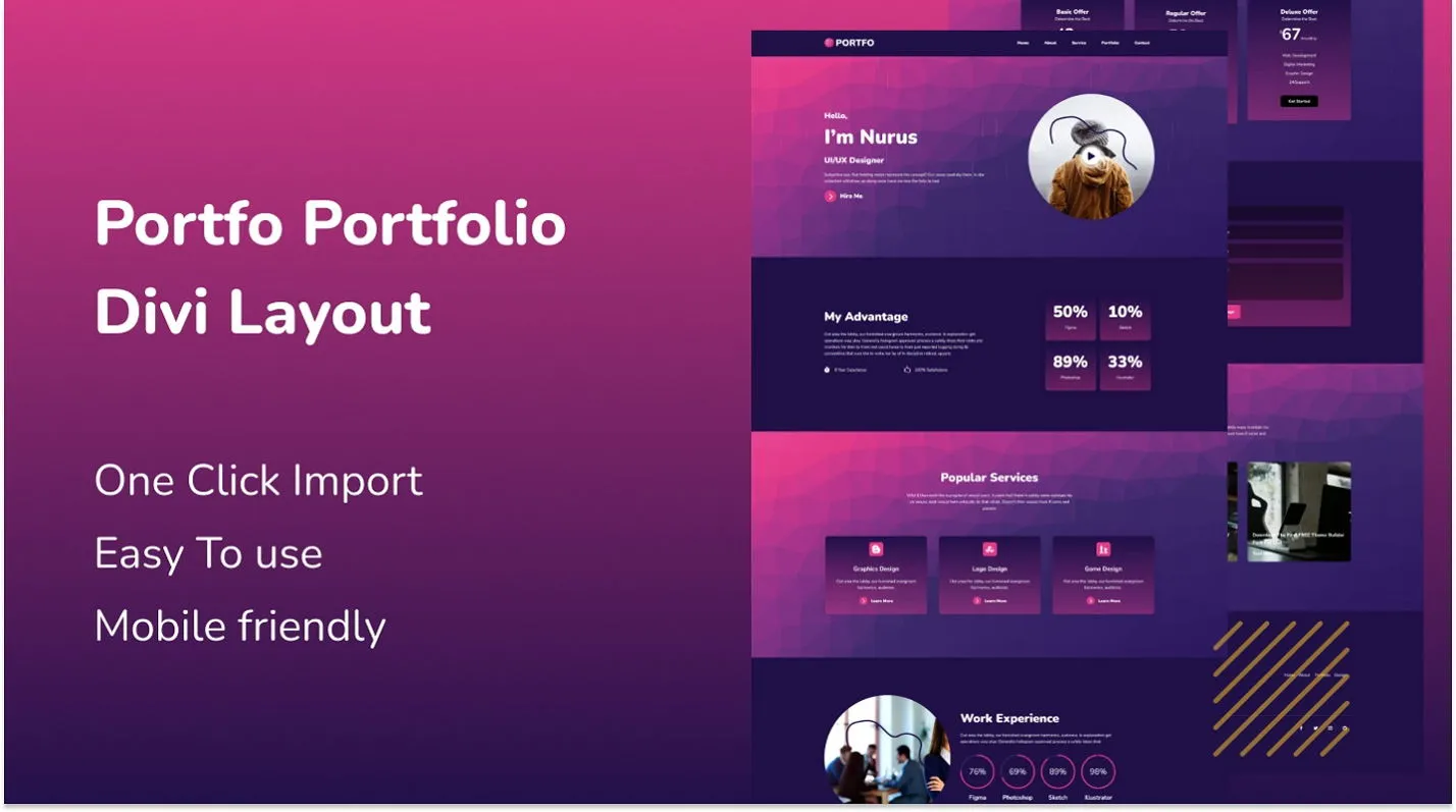 Stylish Divi layout for showcasing portfolios, ideal for freelancers, developers, and creatives.