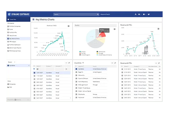 Your portfolio companies are always in motion. Gathering data from finance teams at each company can be difficult and time consuming and standardizing qualitative KPIs is challenging. Dynamo PMV helps GPs automate the tasks of gathering, analyzing, and reporting on portfolio performance for asset-level operating metrics (financial and KPIs), performing valuation, and creating fund overviews. Dynamo offers an out-of-the-box report library, configurable workspaces and dashboards, robust Excel integration, and integration with Dynamo’s other modules such as Accounting, CRM, and Portfolio Management modules. We host a dedicated portal for portfolio companies where they can access their own data and documents, as well as custom dashboards from our report library or designed by you as an admin. With Dynamo PMV, portfolio companies can effortlessly submit information, empowering your team to perform valuations and analyze fund- and asset-level value creation.