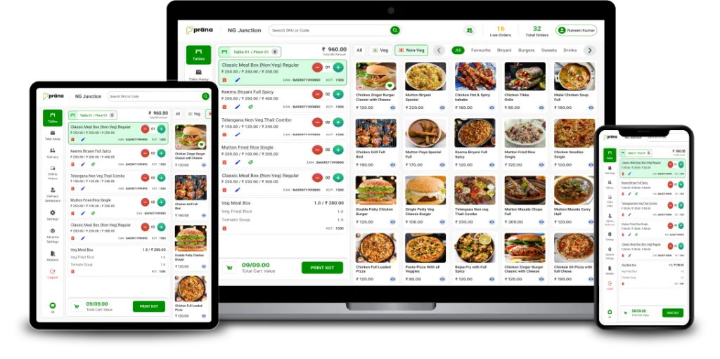 Prana QSR Works on Multiple Devices Prana POS QSR can be configured on multiple devices such as Android, IOS & Windows platforms. Prana POS QSR is compatible with all devices. It gives a smooth and coherent experience to all the users. Prana POS QSR is well-organized and maintains uniformity. Whether you use the web app, android device, windows device, or iPad, you get to enjoy the seamless experience that Prana Point of Sale for QSR offers you. You can download our App from Play store, Appstore, and Microsoft store. Sell anywhere with any device using Prana POS for Quick Service Restaurant. Prana POS QSR works in offline mode too.