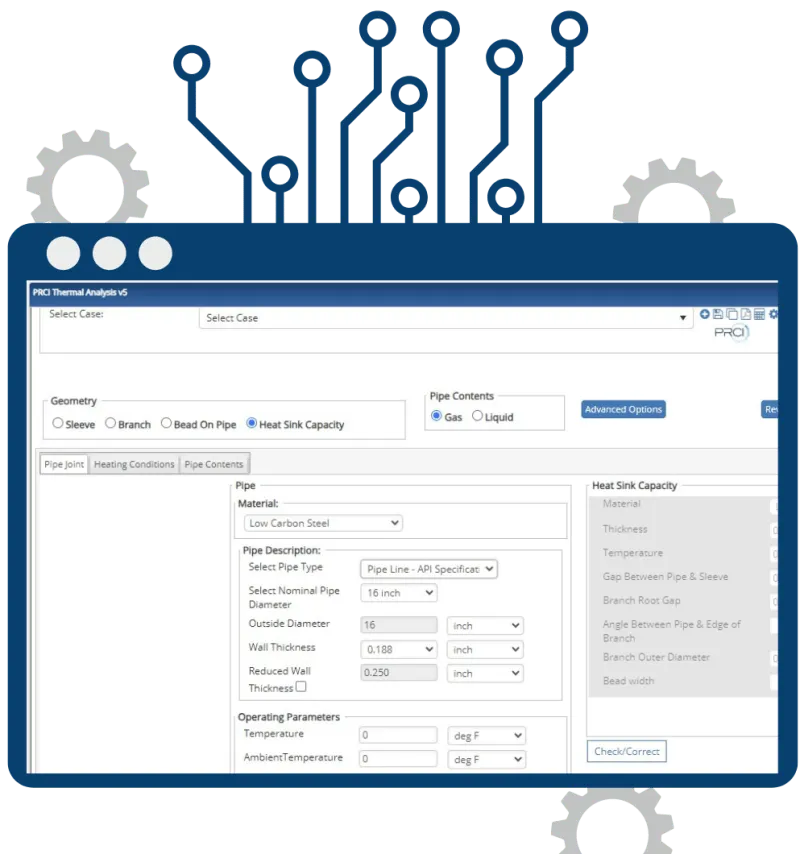 PRCI Thermal Analysis is an industry-standard software tool developed to help pipeline engineers manage heat input and predict cooling rates during in-service welding. It is designed to reduce the risk of hydrogen cracking and burn-through, ensuring the safety and integrity of hot tap operations. The software supports full compliance with major industry standards and enables detailed thermal modeling for sleeves, branches, and other attachments.