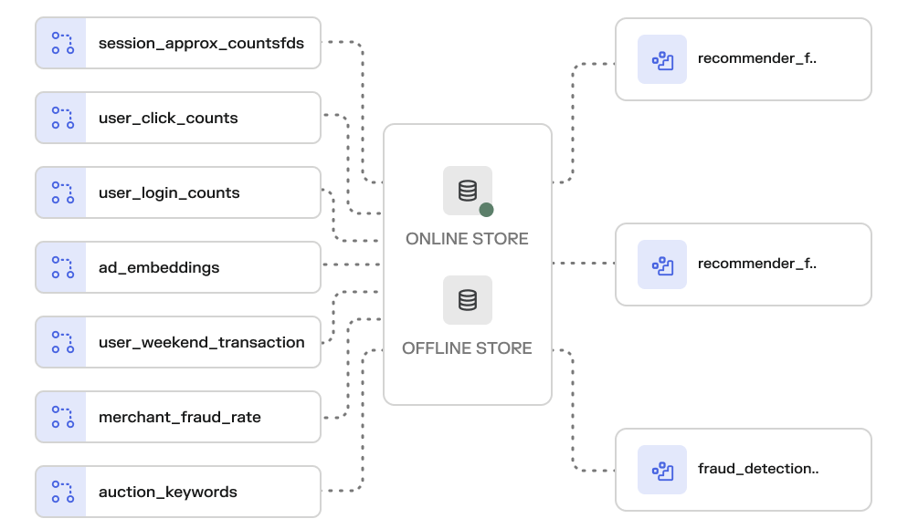 - Real-Time & Batch Support: Serve features with sub-10ms latency and 100ms freshness for both online inference and offline training.