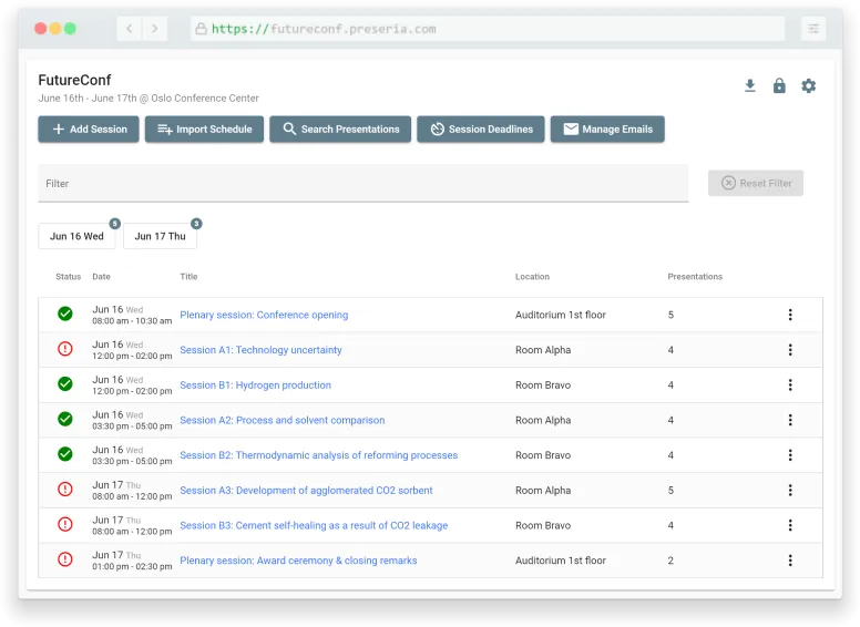 TL;DR – Event presentation management with Preseria in a nutshell