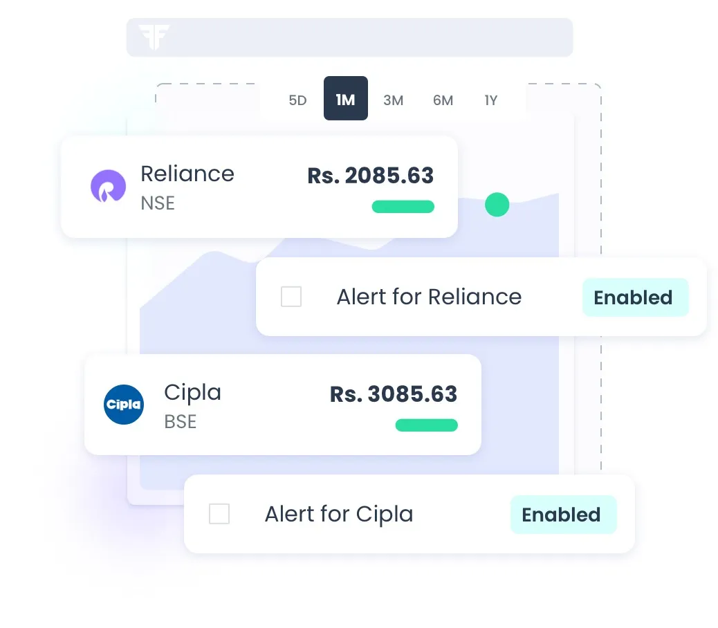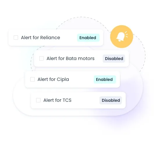 Set real-time, cloud-synced price alerts across NSE, BSE and MCX — get instant notifications on web and mobile.