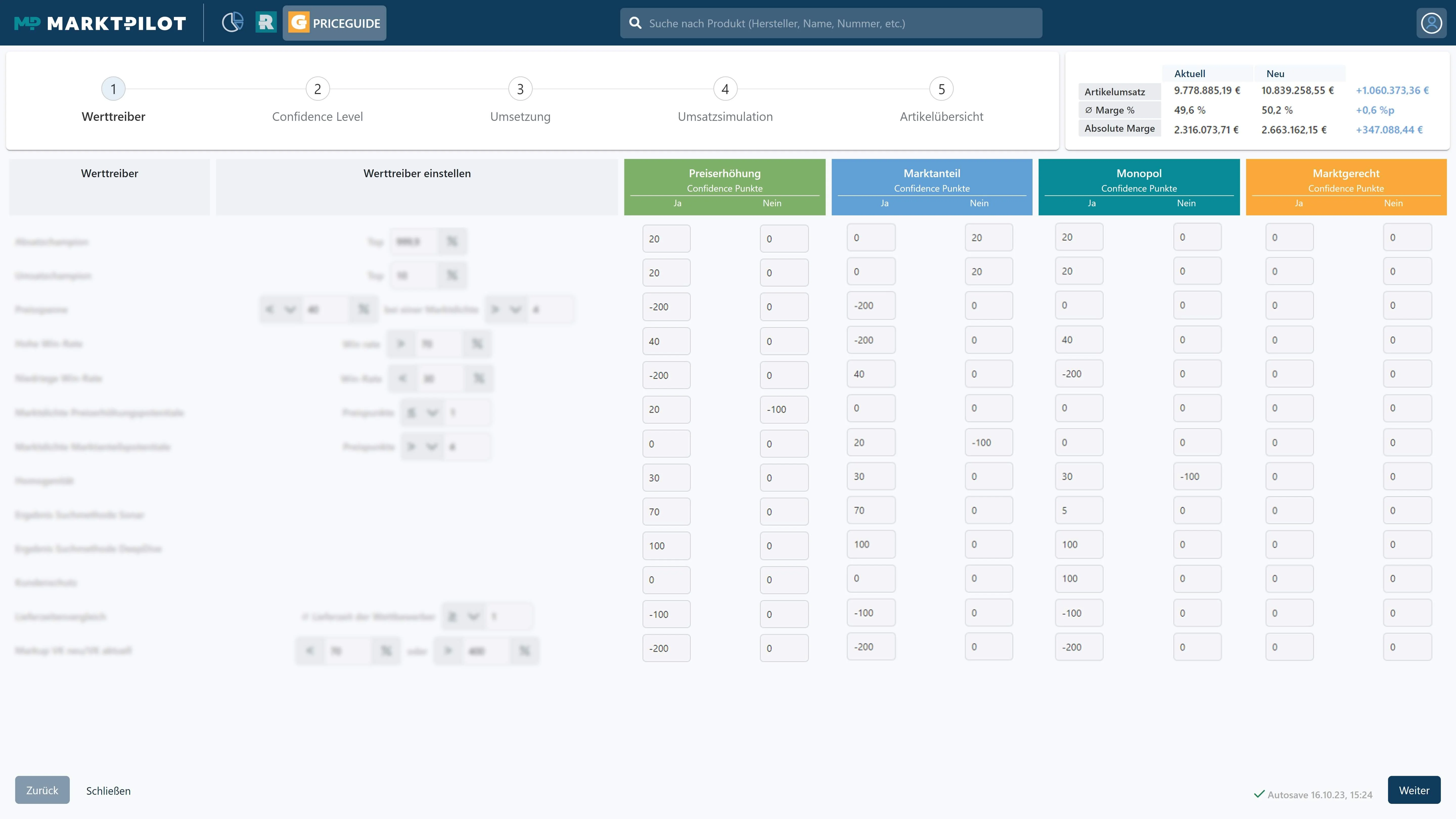 PRICEGUIDE by MARKT-PILOT is a market-based pricing software designed for machine manufacturers to optimize spare parts pricing. It delivers validated, data-driven price recommendations based on real-time market research, helping OEMs increase revenue, improve pricing accuracy, and enhance customer satisfaction through automated and customizable pricing strategies.