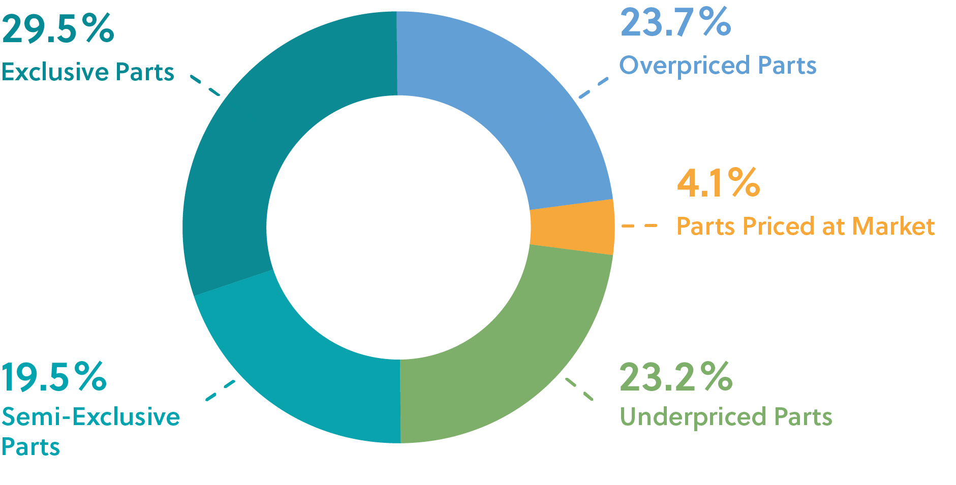 - Clustered overview of pricing categories: exclusive, semi-exclusive, underpriced, market-aligned, and overpriced parts