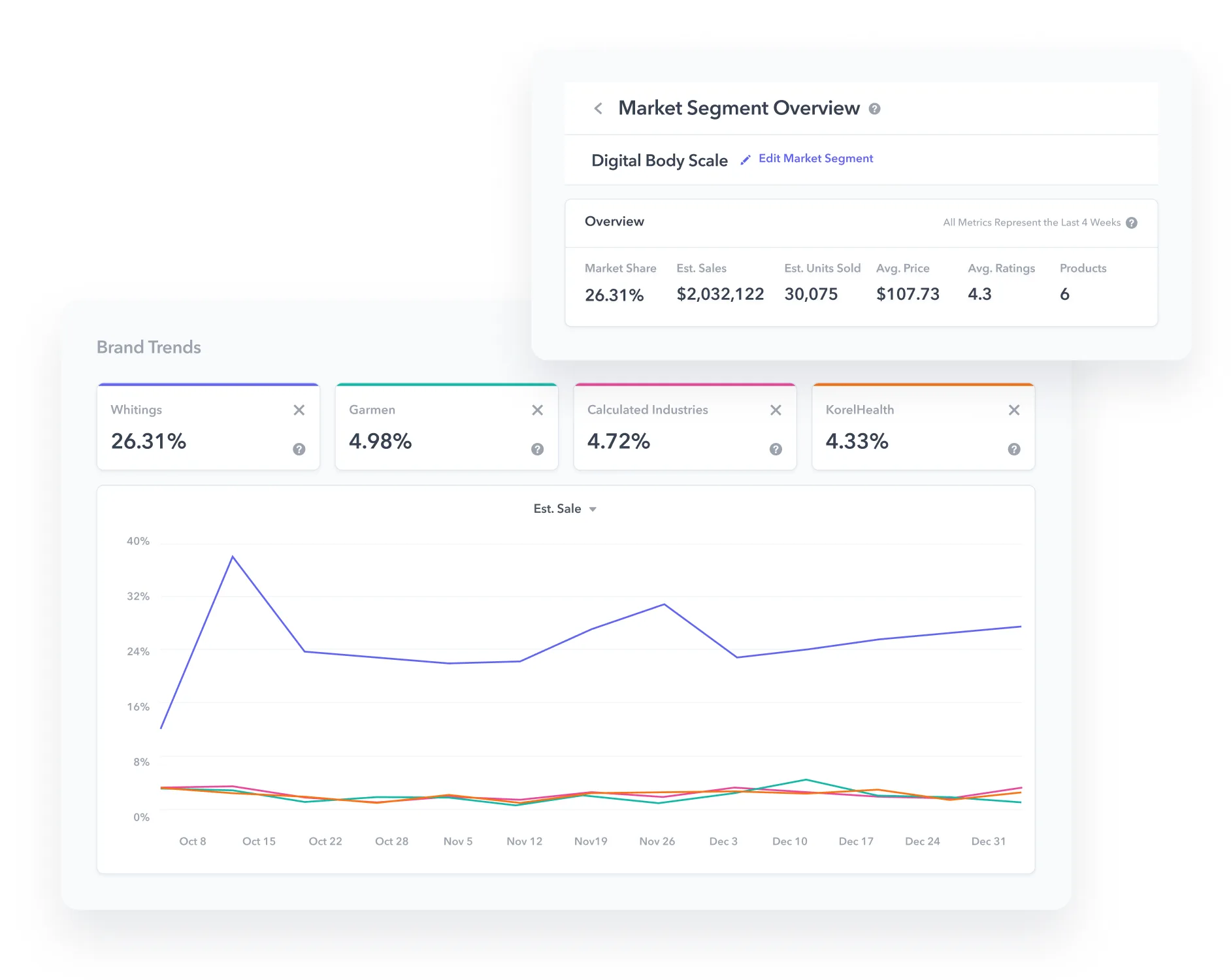Market and competitive intelligence SaaS that tracks Amazon market share and competitor performance.