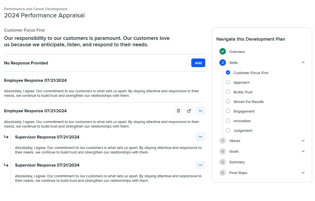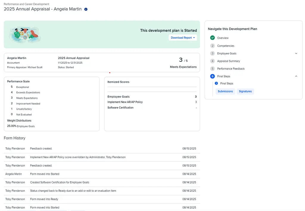 - Continuous Feedback & Coaching: Fosters engagement with real-time coaching and feedback tools, allowing managers and employees to document and review progress collaboratively.