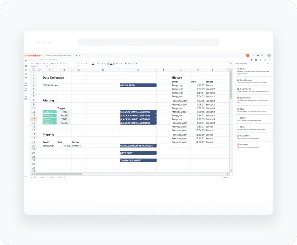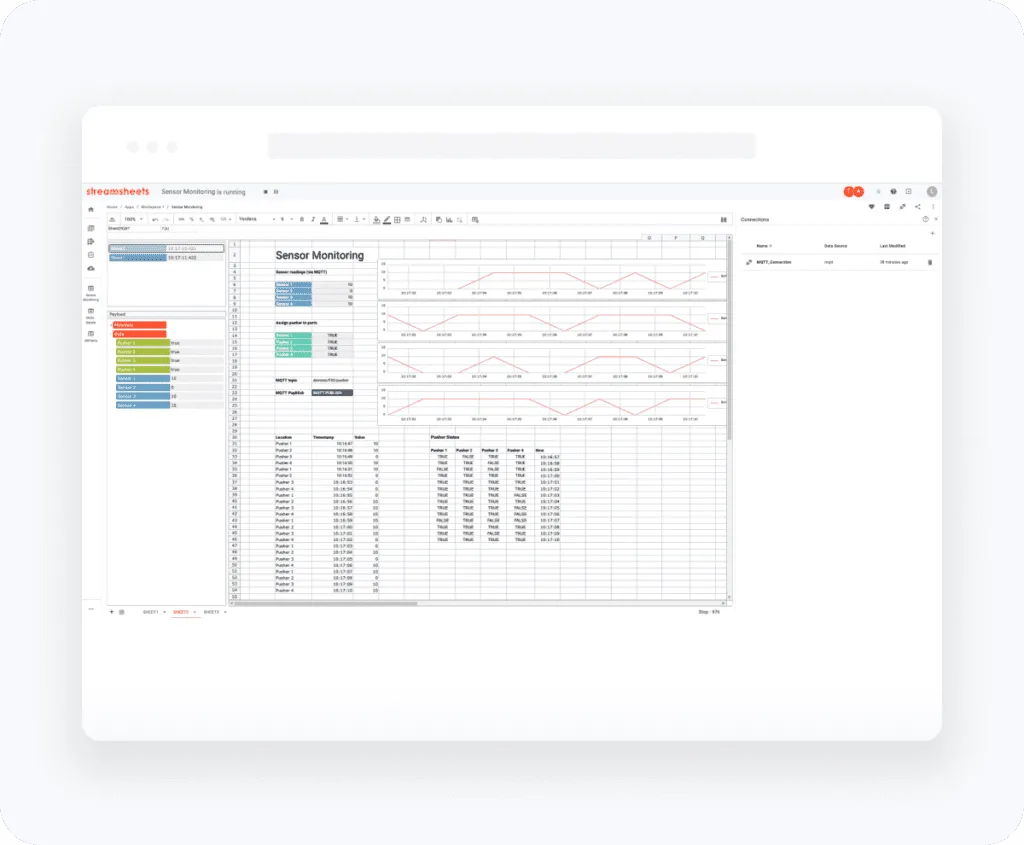- Data Transformation: Allows users to recalculate or aggregate data using streamsheet formulas, transforming and enriching data as needed.