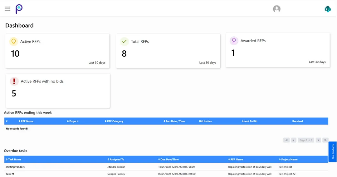 - Bid Evaluation & Awarding: Compare bids using structured dashboards and award contracts efficiently.