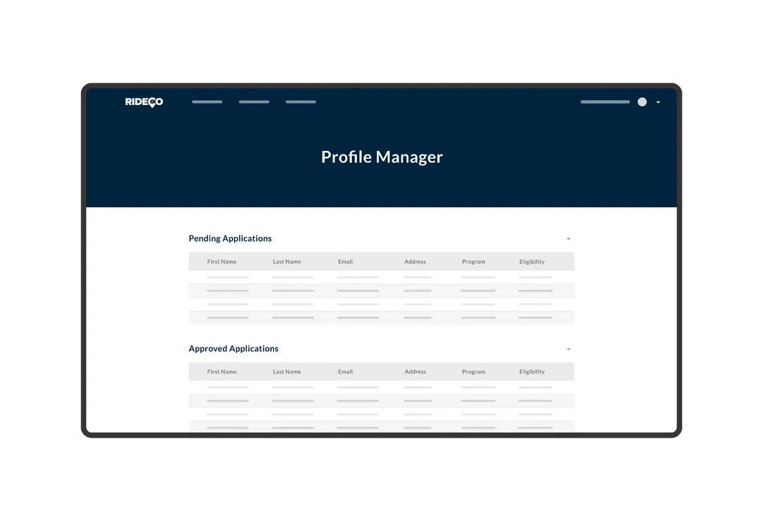 RideCo Profile Manager is a cloud-based software solution that provides transit agencies with a centralized space to store and manage detailed rider information, including ride preferences, emergency contacts, health and mobility data, and standing order bookings. The platform enables agencies to deliver highly personalized on-demand transit experiences by giving operators access to essential passenger details, supporting both regular and specialized transit needs such as paratransit and student transportation. Profile Manager streamlines the collection and review of eligibility applications for user groups, such as passengers with disabilities or students, ensuring only authorized riders are served. The system automates recurring trip scheduling through standing orders, reducing manual booking effort for riders who require regular transportation. By consolidating rider data and automating key workflows, Profile Manager enhances service quality, operational efficiency, and compliance with accessibility requirements.