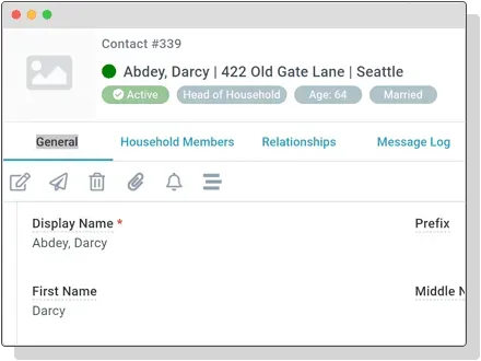 Keep track of household members or create custom relationships to manage complex family situations or to identify other relationships a person has within the church.