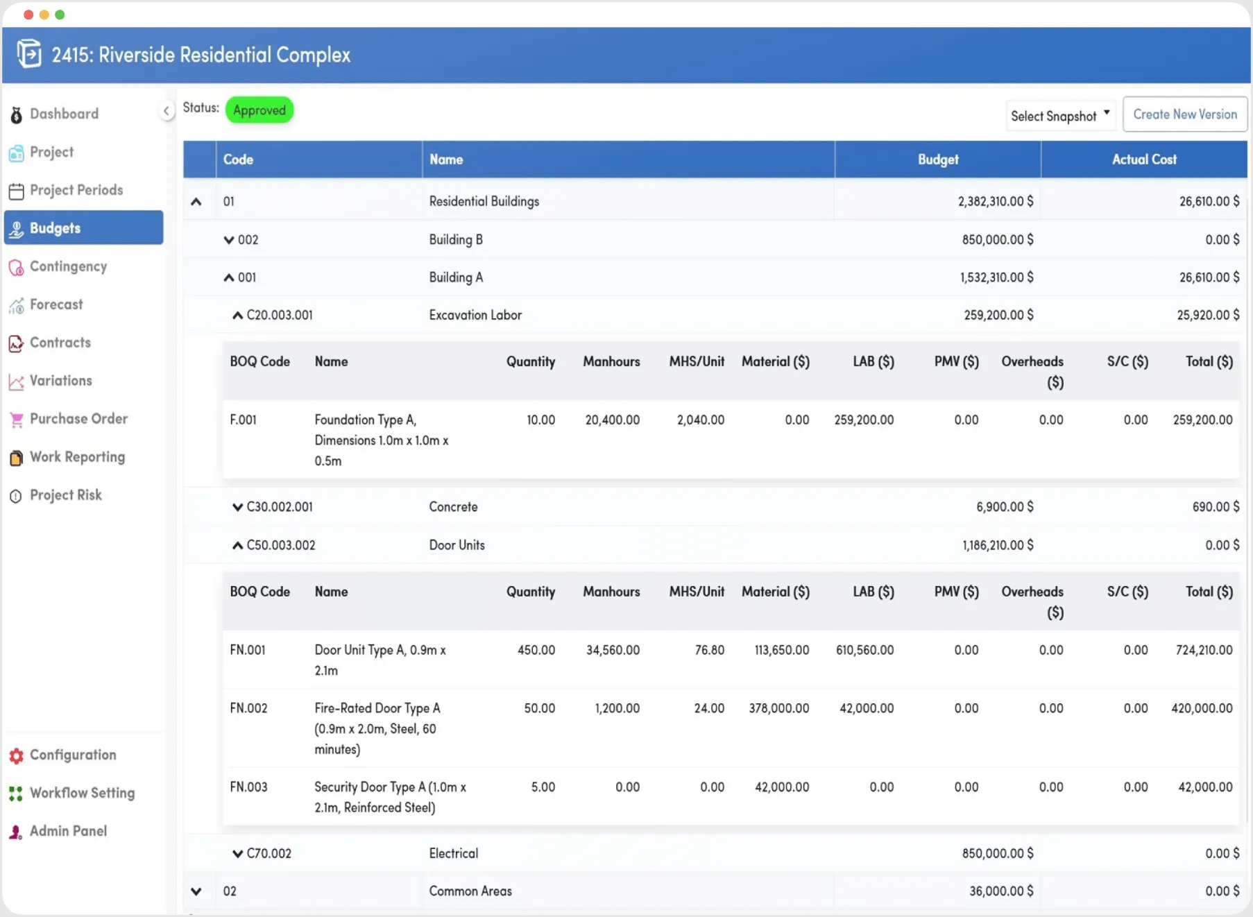 Asite Project Financials is a project financial management tool designed to provide real-time visibility into project costs, budgets, and financial performance. It helps ensure projects stay on budget by integrating financial data and offering comprehensive reporting and forecasting capabilities.