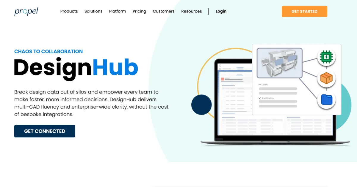Propel DesignHub is a centralized design collaboration environment that connects engineering, product, and cross‑functional teams throughout the entire product development process. It streamlines design reviews, version control, and feedback cycles by unifying CAD assets, documentation, change requests, and team communication in a single cloud workspace.
