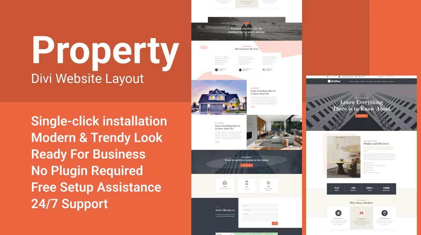 Introducing our Divi layout designed specifically for real estate businesses. It features a modern and professional design, with animated elements to make your website visually engaging. The layout is easy to install with just one click, and it does not require any additional plugins. Our team provides free installation support and 24/7 customer support to ensure a smooth setup and use of the product.