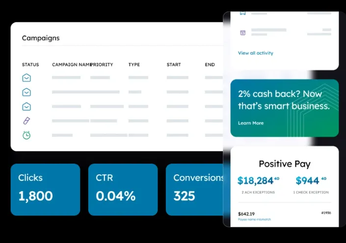 Data tells a story, and every digital banking transaction is a useful data point. Q2 SMART—targeting and messaging platform—aggregates and analyzes these data points, enabling insightful data-driven marketing campaigns. Patterns in customer journeys identify wants and needs. Machine-learning algorithms identify and optimize patterns as enough data is collected to verify them as patterns. Based on these patterns, a recommendation engine suggests which products and services to promote to which account holders, as well as which product campaigns might be most impactful for your enterprise. A user-friendly dashboard helps drive your targeted marketing. With a user-friendly dashboard you can easily uncover opportunities to engage account holders at the right time to deliver relevant solutions and an exceptional customer experience to build stronger relationships.