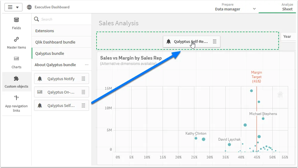 Qalyptus Self-Reporting is an extension that integrates seamlessly with Qlik Sense. It allows users to create tasks with unlimited reports in different formats (PDF, Excel, PowerPoint, ..), add different filters for each report (current selections or a bookmark), add unlimited recipients, customize the email message, embed charts and tables in the email message, and choose the frequency of execution.