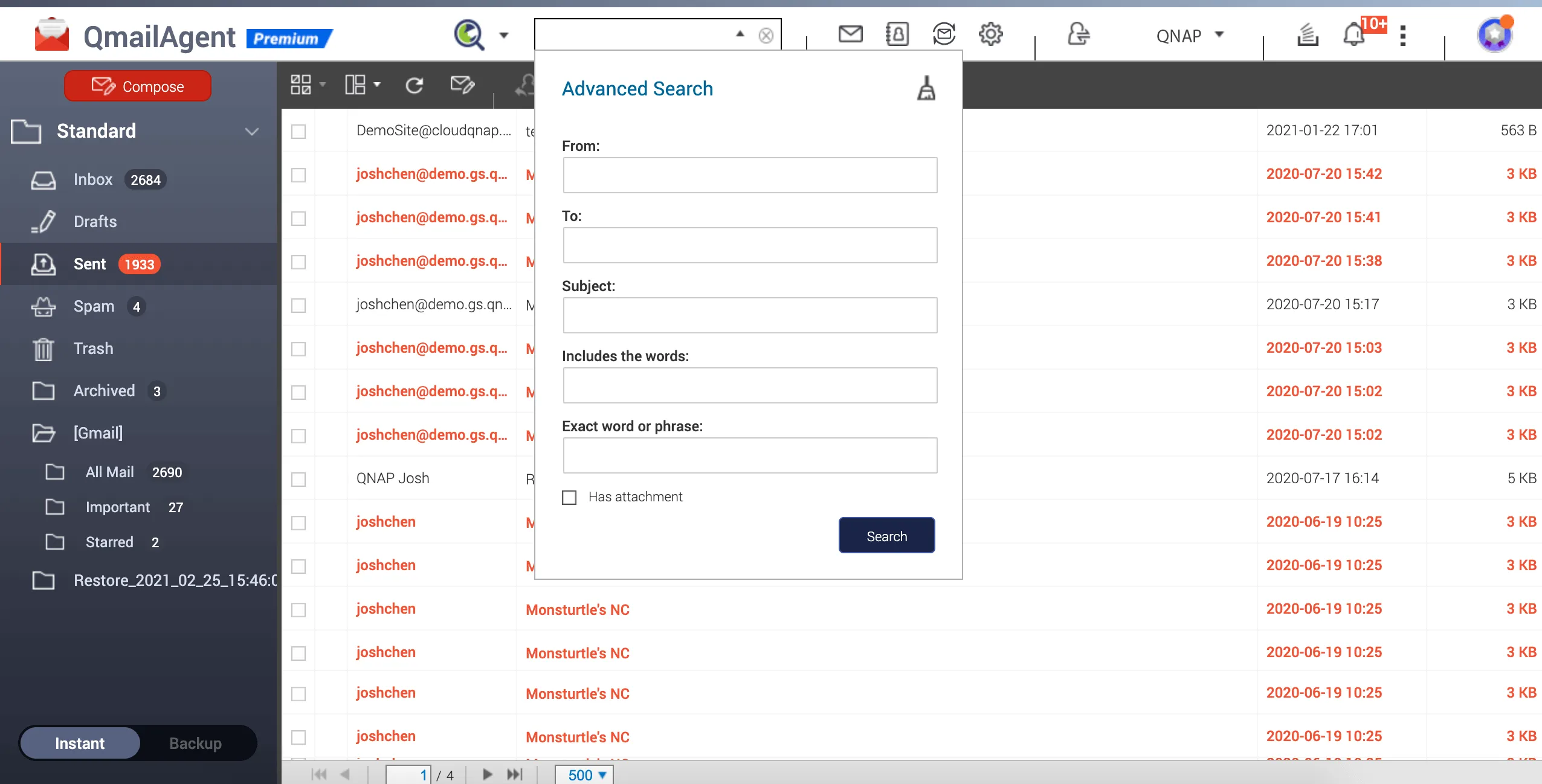 Easily backup/recover emails and efficiently manage multiple email accounts with QmailAgent, a secure and easy-to-use centralized email service.