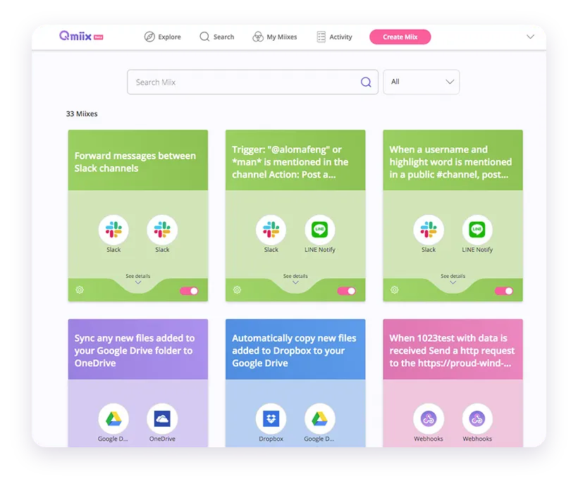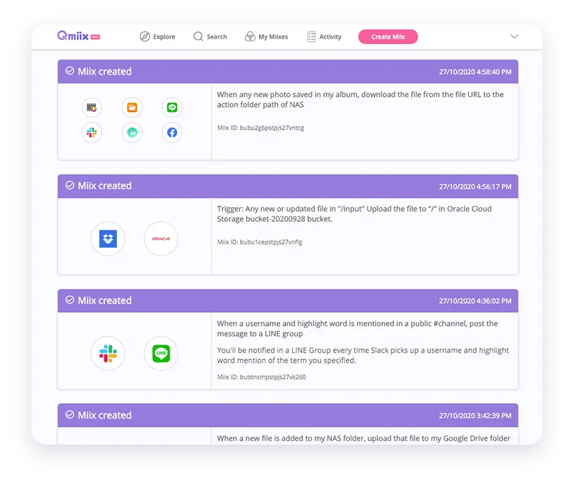 Manage all your workflows or miixes from the web or mobile app.