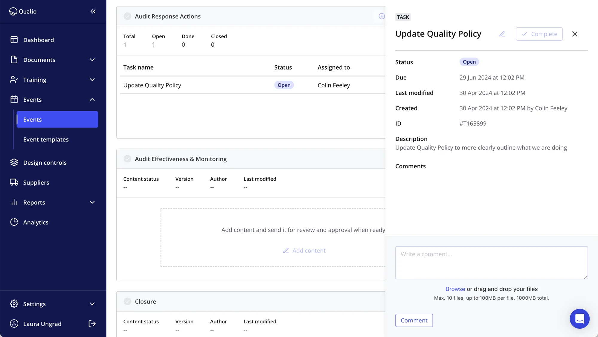 Qualio Events operates as both CAPA management software and nonconformance management software, unlocking an efficient, automated pathway for managing all your quality events from root cause to close-out. Build and apply templates, define steps and tasks, and drive quality improvement that you'll be proud to show your auditor.