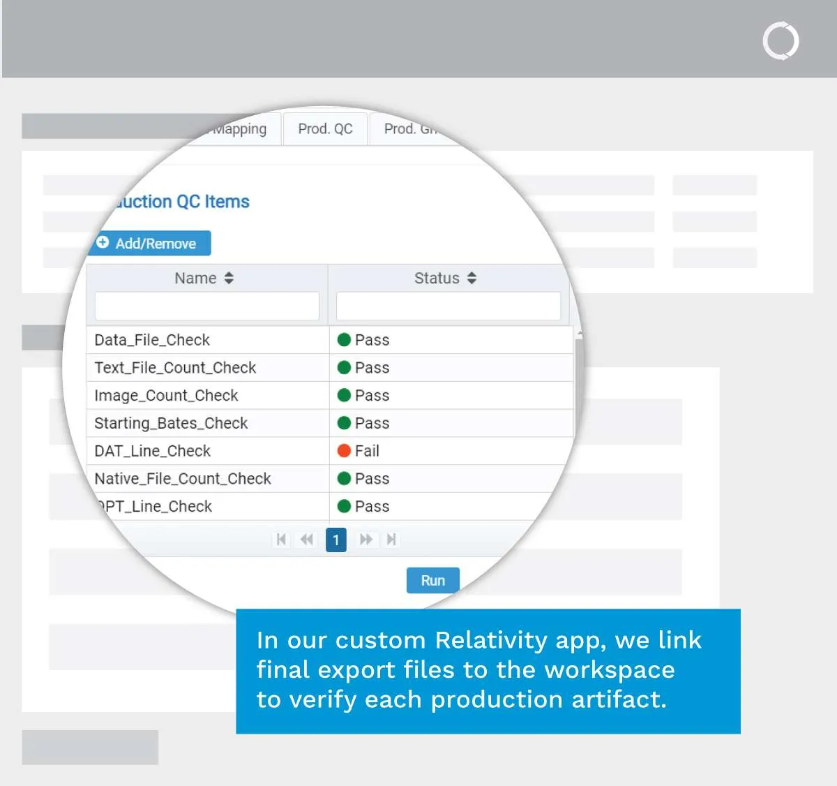 - **Automated Production QC: **Production Inspector™ automates final production checks, including bates, page counts, privilege/text placeholders, and other production-level validations to prevent costly errors before export.
