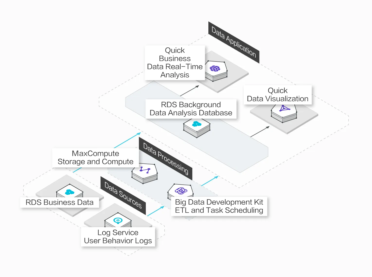 - Seamless Integration of Cloud Data Supports multiple data sources, such as ApsaraDB for RDS, AnalyticDB, MaxCompute, MySQL, SQL Server, and local files.