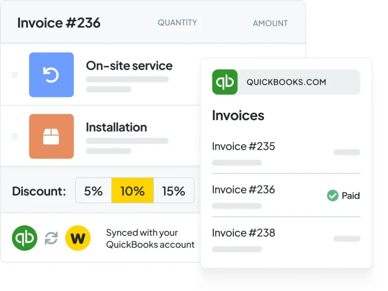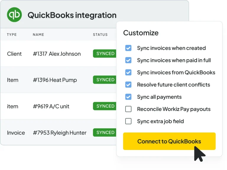 - Two-Way Sync: Import clients, items, and invoices from QuickBooks and push new data from Workiz.