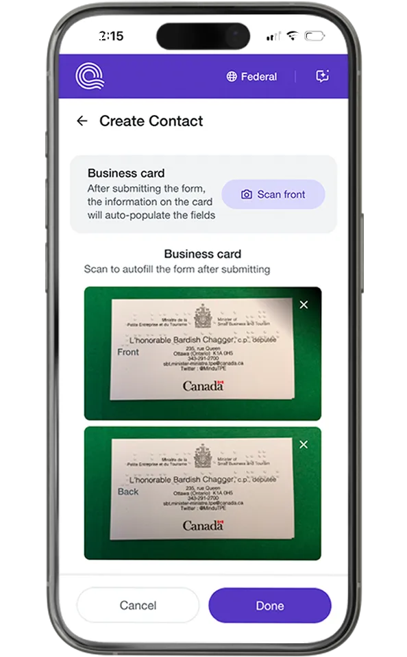 - Business Card Scanner: Instantly create new contacts with auto-filled details from scanned cards.