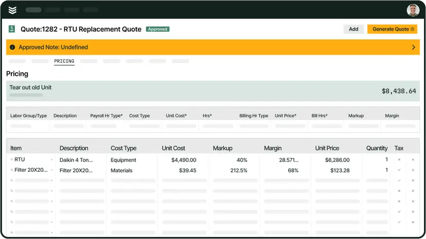 - Quote in the field or the office. Fast creation from either side of the business.