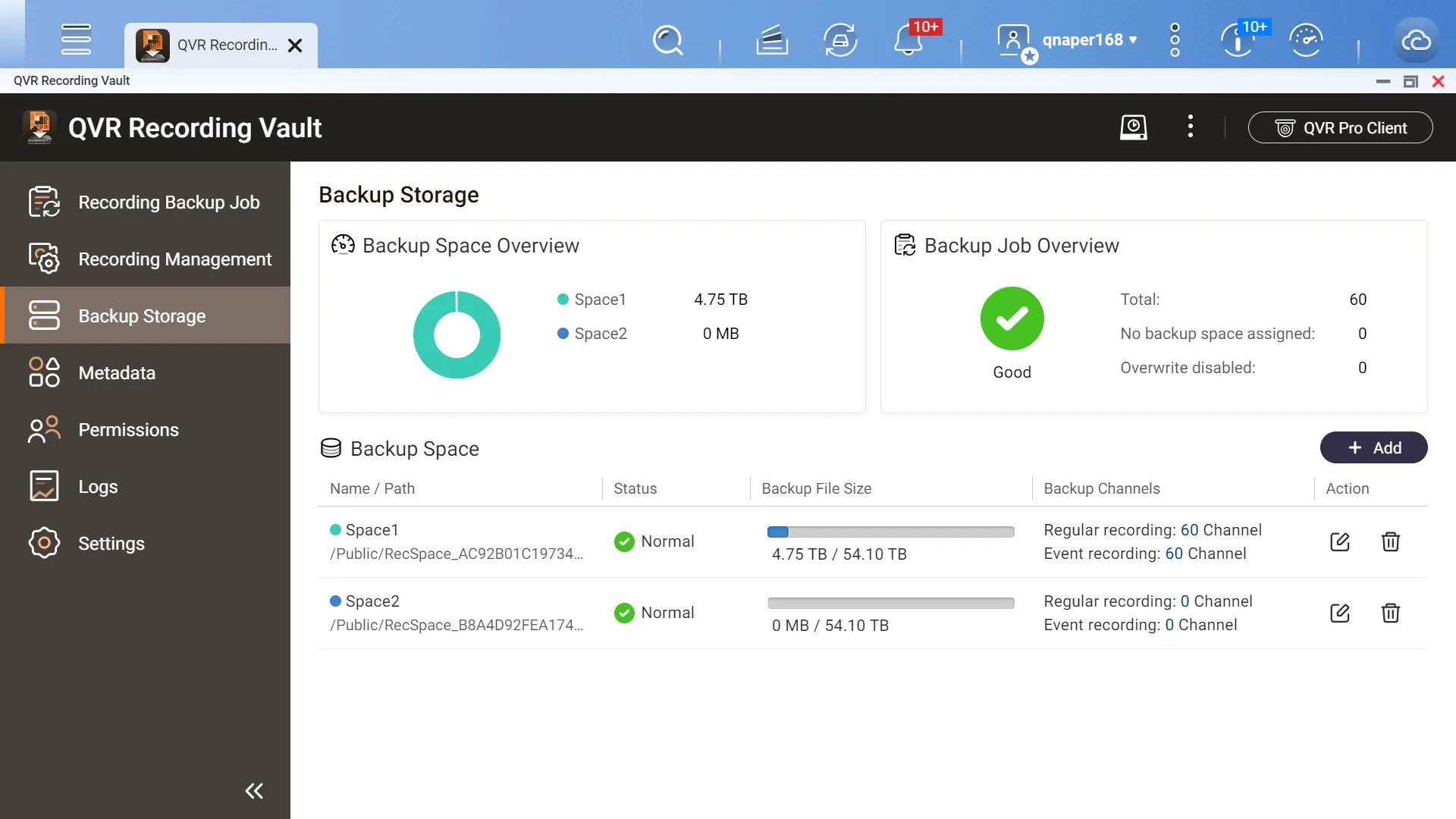 - Once the QVR Recording Vault backup server is connected to the endpoint QVR Pro/QVR Elite recording servers, it automatically backs up video recordings from those endpoints.