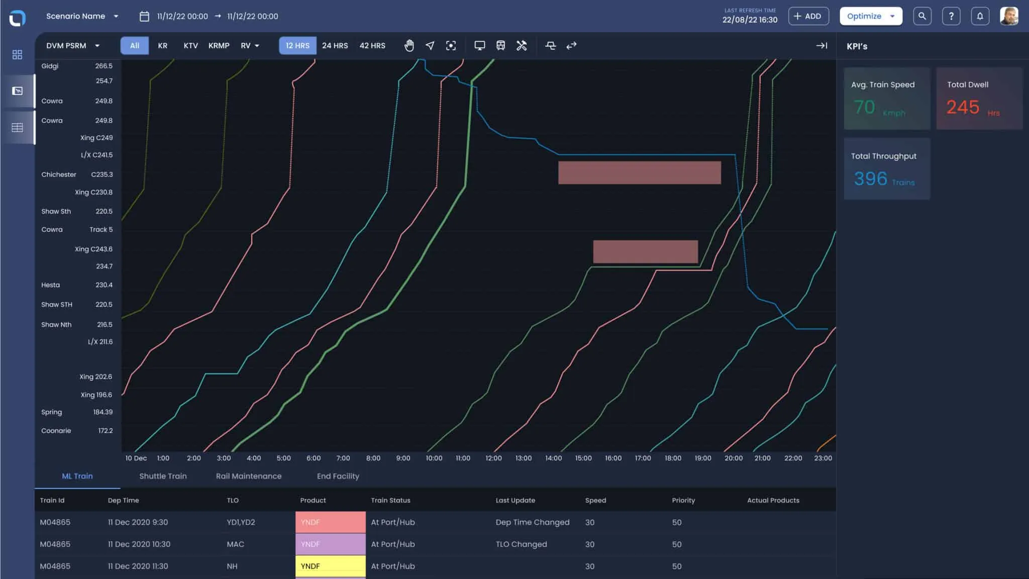 - Optimize train plans to maximize network throughput and minimize delays.