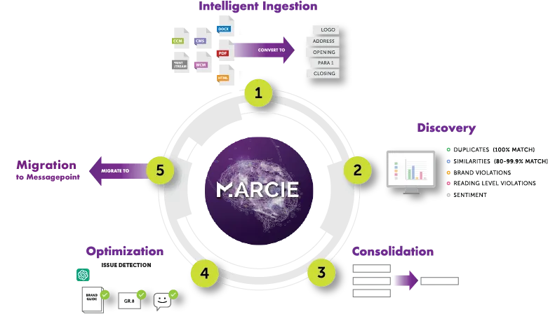 - Migration to Modern Platforms: Once optimized and cleaned up, Rationalizer enables seamless migration of content into Messagepoint or other CCM platforms.