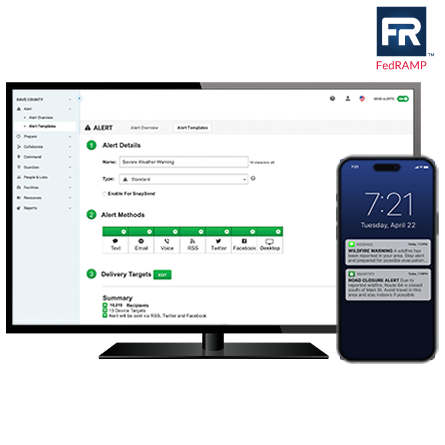 A FedRAMP-authorized mass notification system for governments, organizations, and schools to send rapid, reliable alerts.
