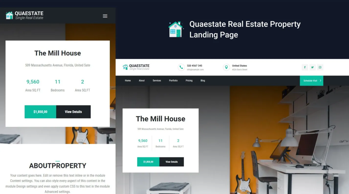 Quarter is one of The real estate company landing page templates built with the divi theme. Each and every section of the template is 100% customisable according to your needs. It is supported on all modern & old browsers, tablets, and mobile devices.