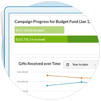 Realm’s giving and pledge dashboards provide church leaders with important information like campaign progress, breakdowns by fund or payment type and year-over-year giving totals.