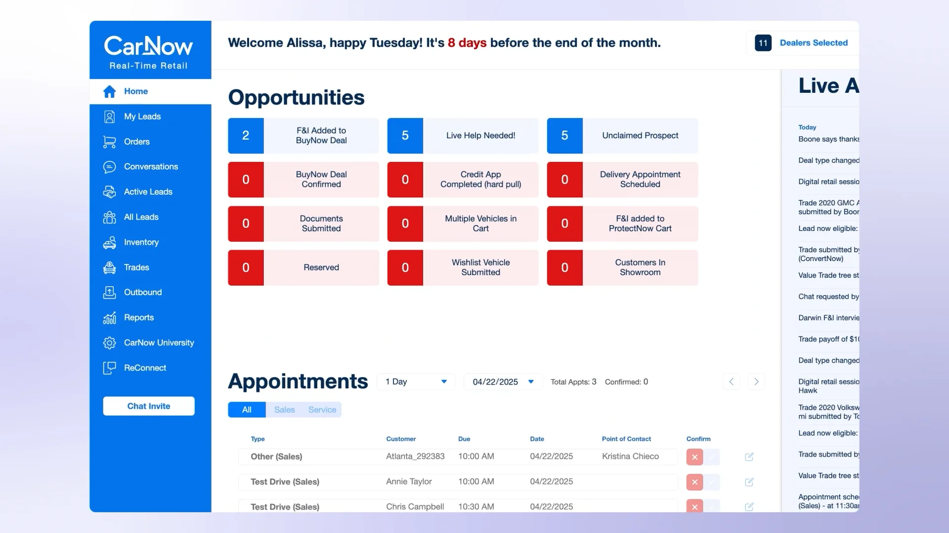 CarNow ReConnect is an automated lead follow-up solution for dealerships that blends AI, automation, and live engagement. It re-engages leads via SMS and email, personalizes outreach by lead type, and escalates conversations to staff when needed, helping convert more opportunities into appointments and sales.