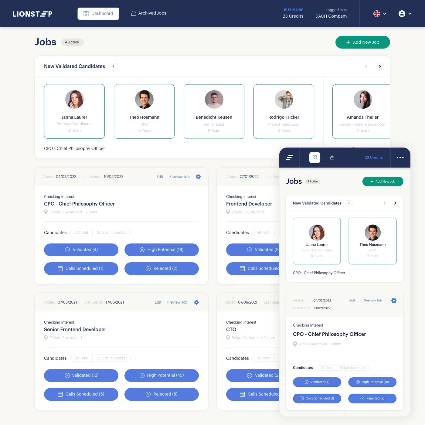 - Flexible Credit System: Prepaid model allowing companies to use recruiting services on demand.