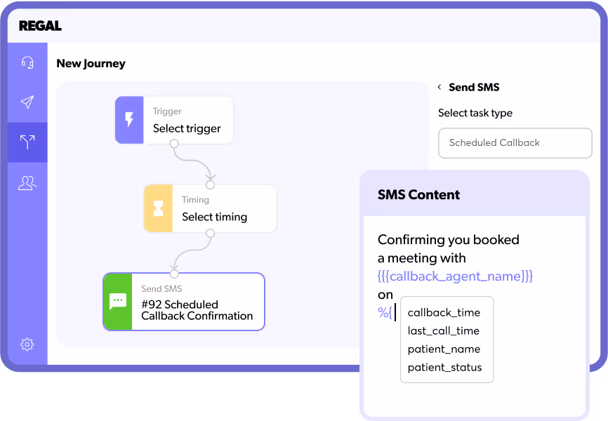 Build personalized customer journeys triggered by key events — all without the need for a developer. With Regal’s Journey Builder, you can craft timely, cross-channel interactions that feel effortless to customers and drive better engagement.