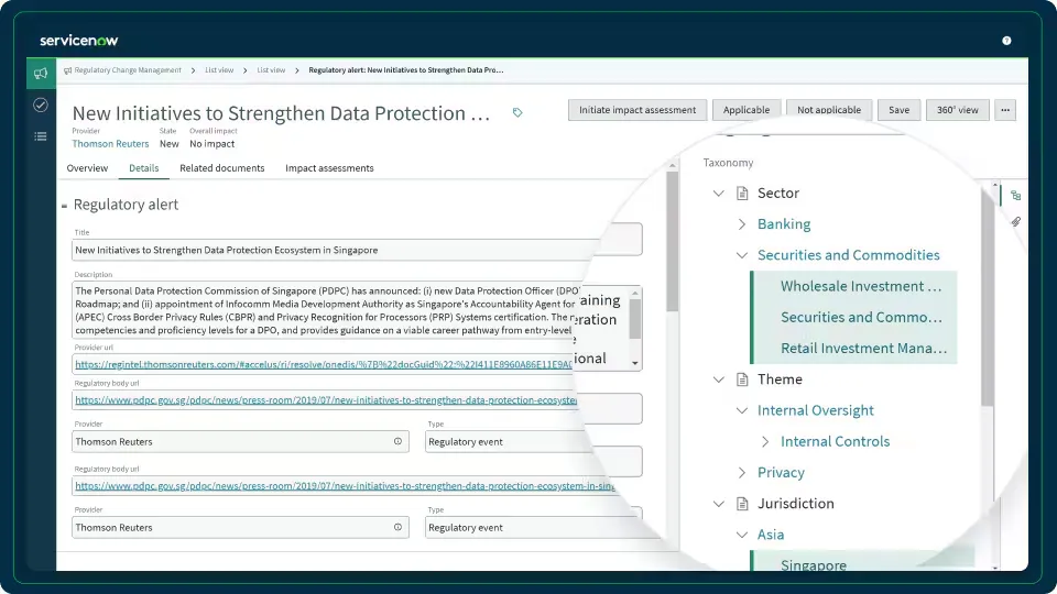 ServiceNow's Regulatory Change Management is a comprehensive software solution designed to help organizations effectively manage regulatory changes, mitigate risks, and ensure compliance in real-time. This tool is part of ServiceNow's broader Governance, Risk, and Compliance (GRC) suite, offering businesses a streamlined approach to navigate the complex landscape of regulatory requirements.