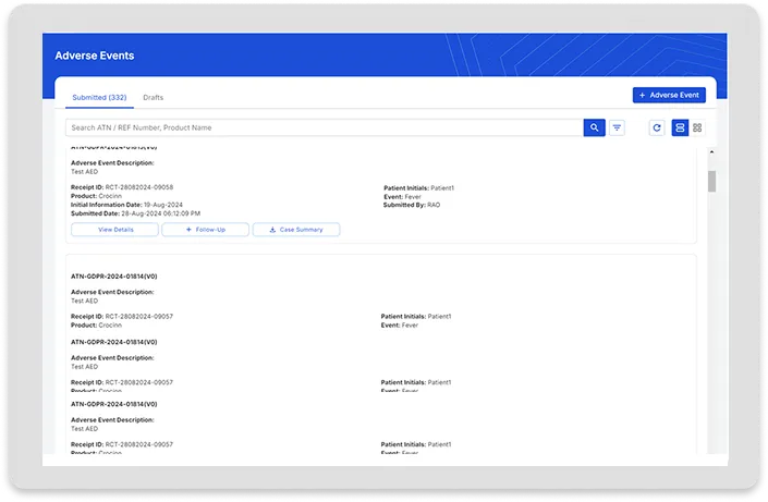 Report adverse events using our mobile application and web portal for faster reporting from hospitals, clinical trial sites, and other field locations.