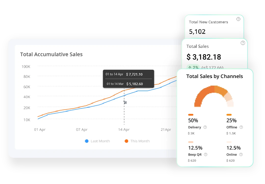 - **Trend Analysis & Forecasting: **Track historical performance to identify trends and forecast future demand. Use predictive insights to plan inventory, staff scheduling, and marketing efforts effectively.